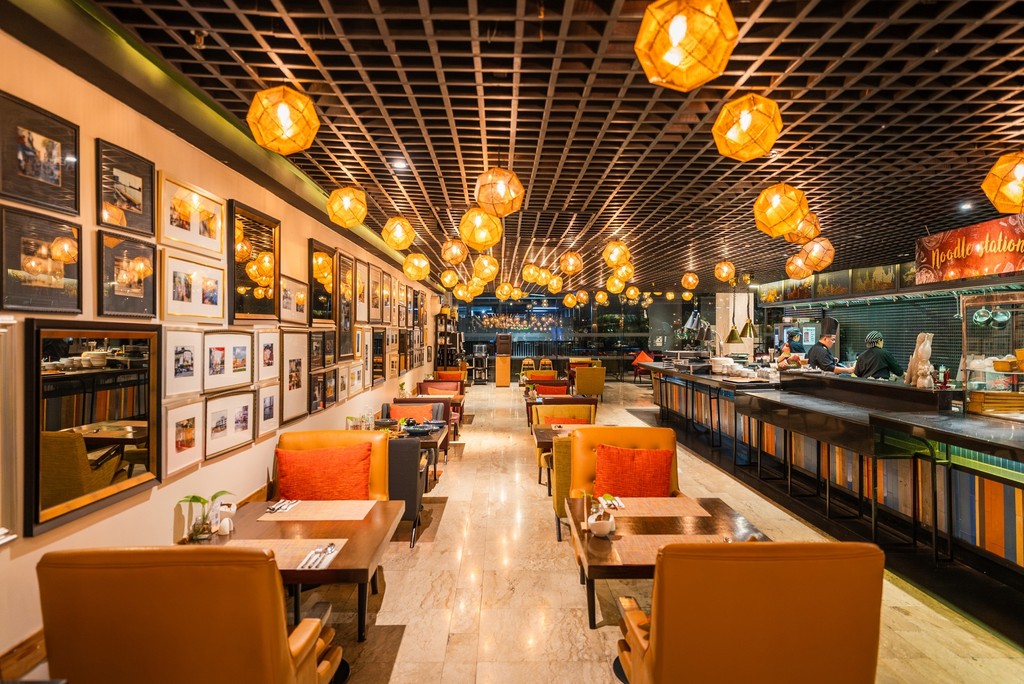 A free-standing juice and barista bar adds to the atmosphere, serving fresh-pressed juices, artisanal coffee, and hand-crafted cocktails. For those looking for a Bangkok Thai restaurant offering breakfast, lunch, dinner, and drinks, this is the ideal spot, combining a relaxed yet refined ambiance that blends local flavor with modern style.